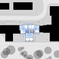 Tirant parti du plan existant en T et sans modifier la structure pré existante, le projet propose un ensemble de logements à bow-windows coté Nord et en gradins côté Sud. La rationalité constructive de l’ensemble (noyaux et façades porteuses, plateaux libres en dalles pré-contraintes) permet une grande liberté d'aménagement.
