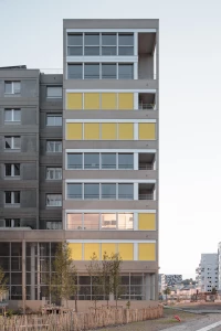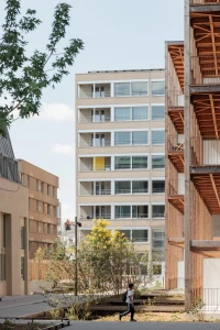 Le lot Alix du quartier République sur l’île de Nantes constitue la proue du nouveau quartier avec une mixité typologique assumée. Trois ensembles accolés proposent trois manières d’habiter : la Stèle offre sur 10 étages des salons triple orientés, le bâtiment Intermédiaire superpose 3 maisons duplex en construction bois, et le bâtiment Panoramique offre de généreux salons d’angle sur loggia.