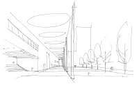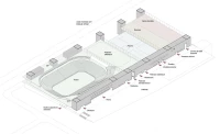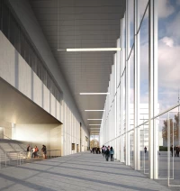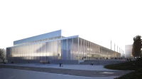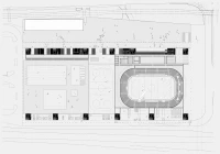 Ce projet de complexe sportif (patinoire, piscine, etc) du quartier Malley à Lausanne choisit de mettre en avant le caractère collectif et public du programme. En prolongement du parvis, une immense salle linéaire, sorte de « salle des pas perdus », articule l’ensemble des accès aux différents programmes, disposés le long d’un mur épais emblématique. Dix portes, possédant chacune leurs proportions et leurs particularités, évoquent les entrées multiples d’un labyrinthe, débouchant sur un hall partagé et polyvalent, espace de tous les possibles.