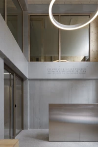 Le projet de commissariat constitue le socle d’un immeuble mixte (logements, commissariat, hôtel) à l’entrée du quartier Beaujon à Paris 8ème. L’immeuble présente une façade en pierre massive de Saint Maximin. L’aménagement intérieur met en valeur les matériaux bruts et nobles : affirmation de la structure béton laissée nue, cloisonnements en panneau bois, inox des meubles, sol en terrazzo coulé.
