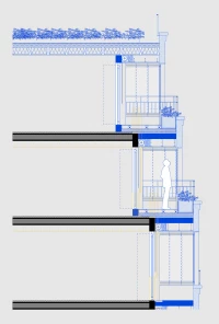 Tirant parti du plan existant en T et sans modifier la structure pré existante, le projet propose un ensemble de logements à bow-windows coté Nord et en gradins côté Sud. La rationalité constructive de l’ensemble (noyaux et façades porteuses, plateaux libres en dalles pré-contraintes) permet une grande liberté d'aménagement.